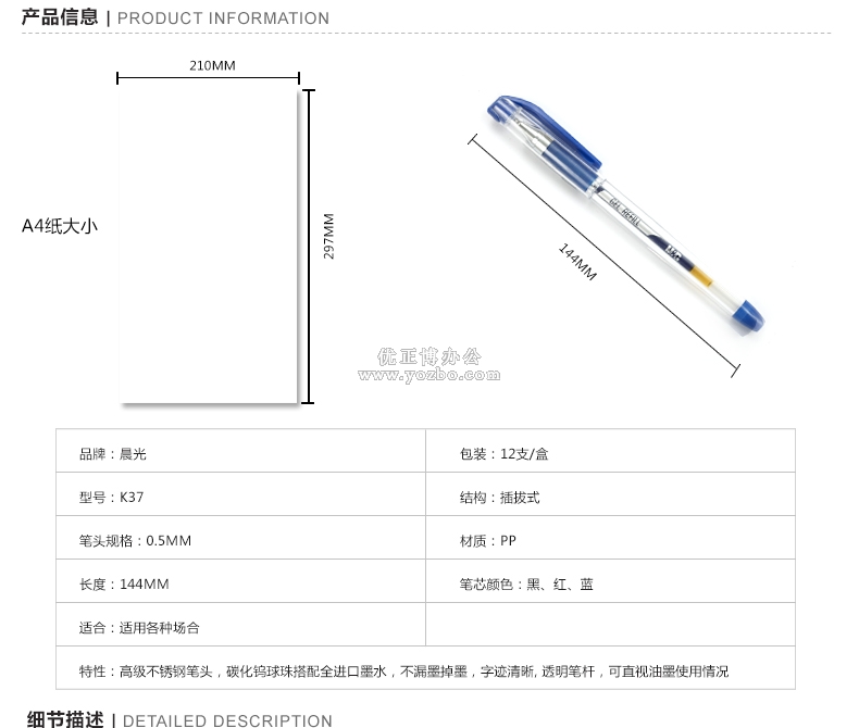 > 办公用品 > 书写工具 > 中性笔 > 晨光中性笔 K-37 0.38mm
