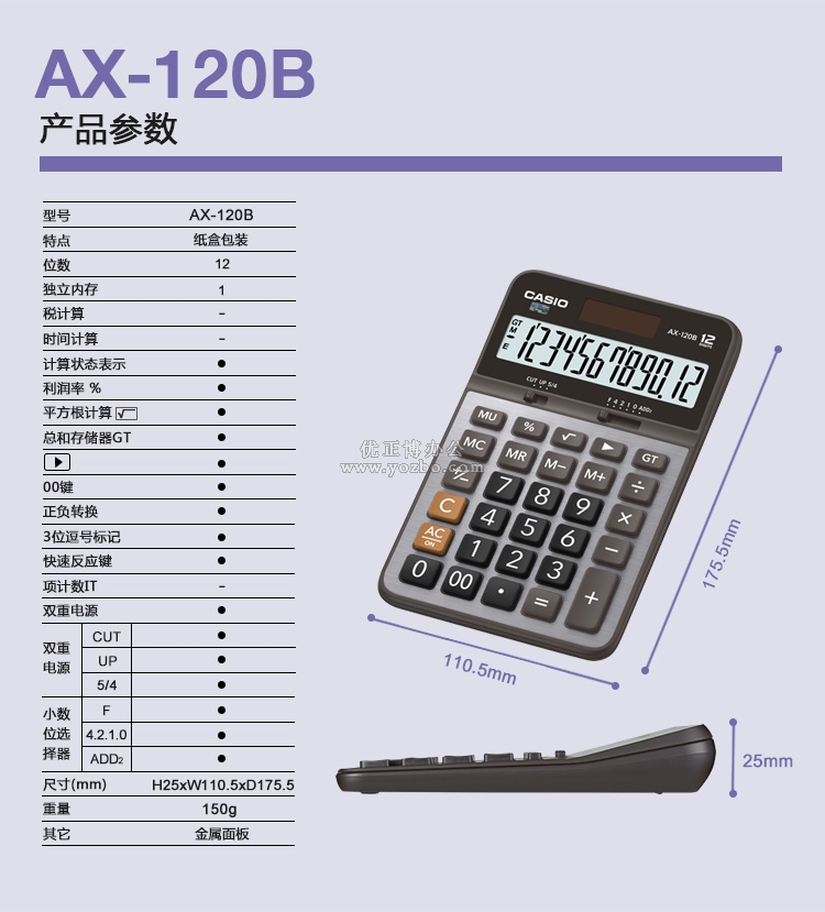 > 办公用品 > 桌面用品 > 计算器 > 卡西欧(CASIO)12位数桌面型计算器 AX-120B