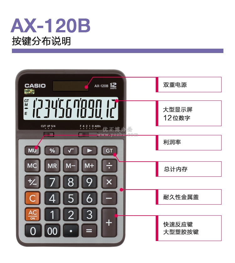 卡西欧(CASIO)12位数桌面型计算器 AX-120B