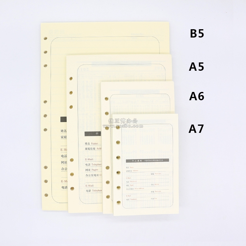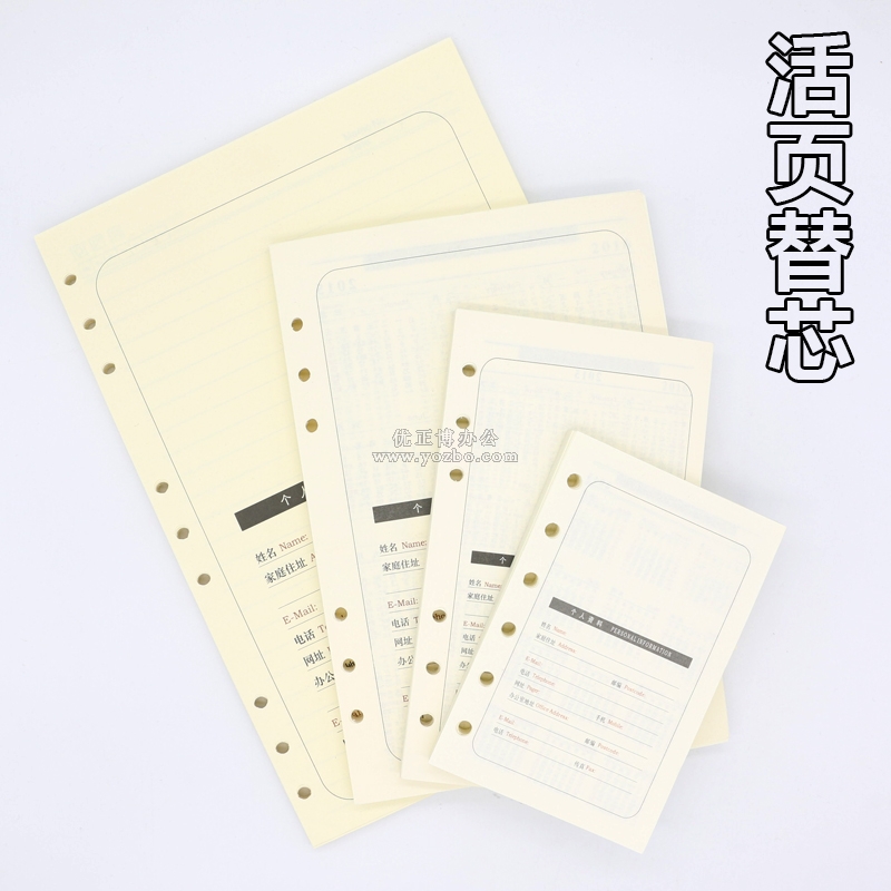 红缘 6孔活页芯 道林米黄色纸芯 100页分享 暂存