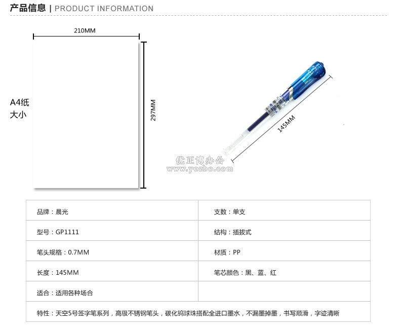 > 办公用品 > 书写工具 > 中性笔 > 晨光签字中性笔 天空5号 GP-1111 0.7mm