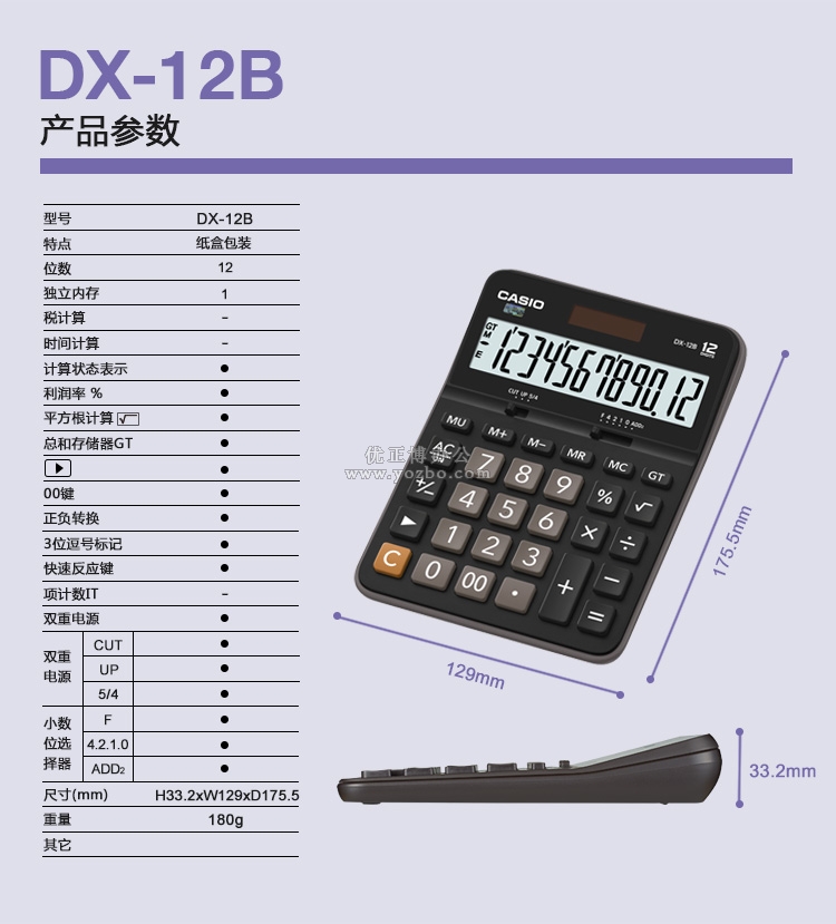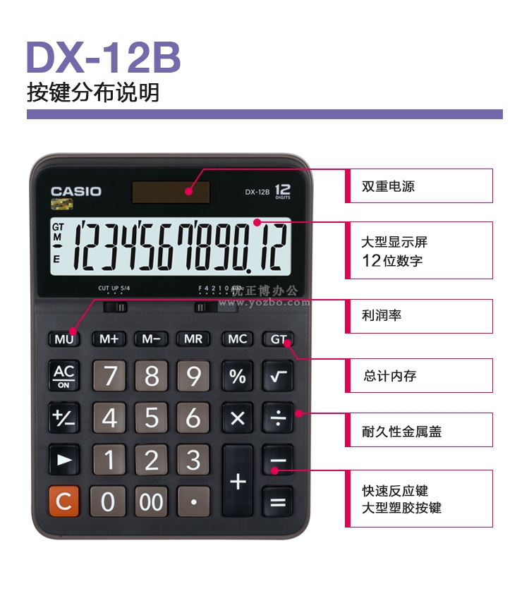 卡西欧(CASIO)12位数桌面型计算器 DX-12B