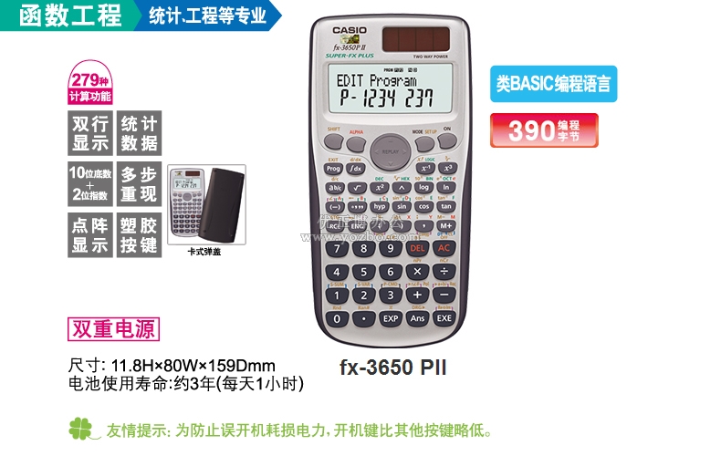• 卡西欧(CASIO)工程专用函数编程计算器 FX-3650P