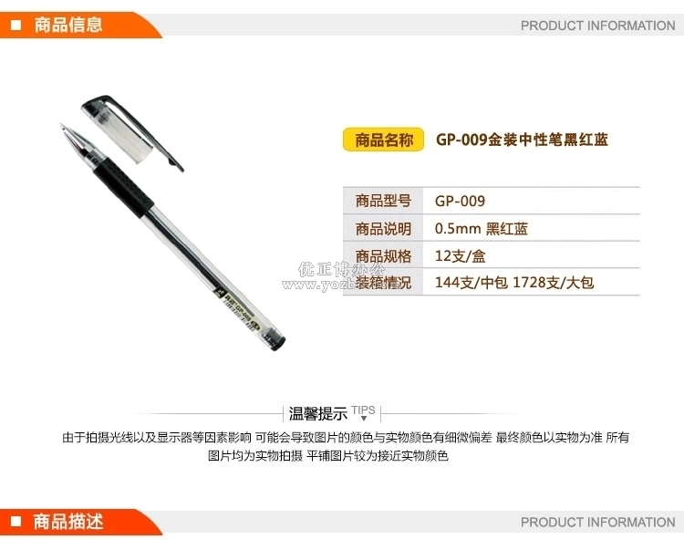 > 办公用品 > 书写工具 > 中性笔 > 真彩 金装中性笔 GP-009 0.5mm