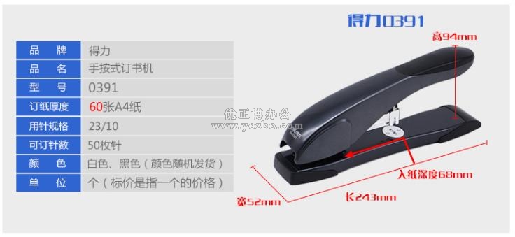 > 办公用品 > 桌面用品 > 订书机 > 得力0391 重型订书机