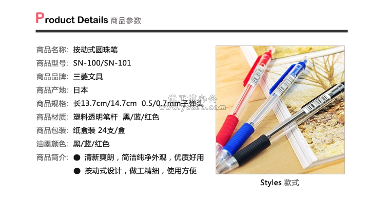 > 办公用品 > 书写工具 > 圆珠笔 > 三菱SN-101 按动圆珠笔 原子笔 0.7mm