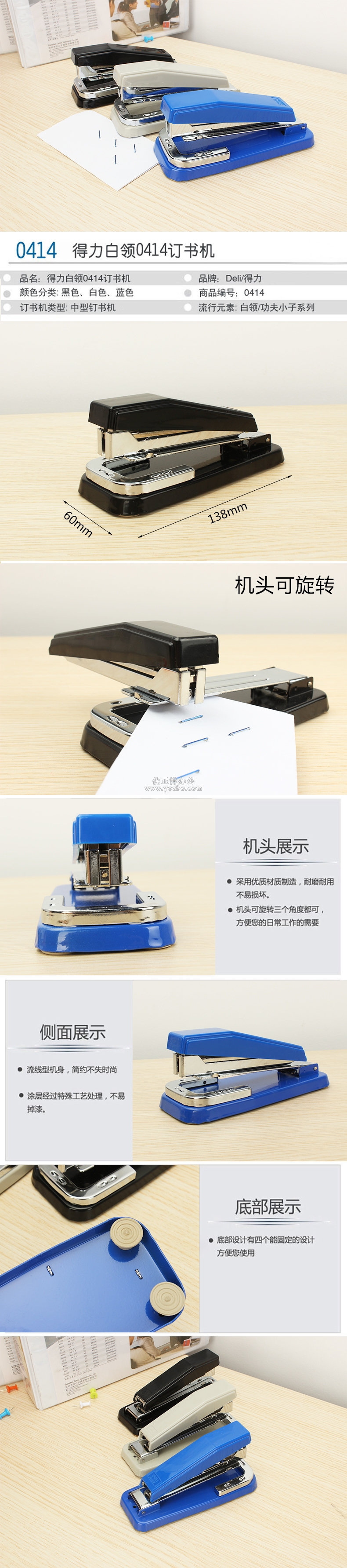 > 办公用品 > 桌面用品 > 订书机 > 得力0414 订书机 机头可旋转