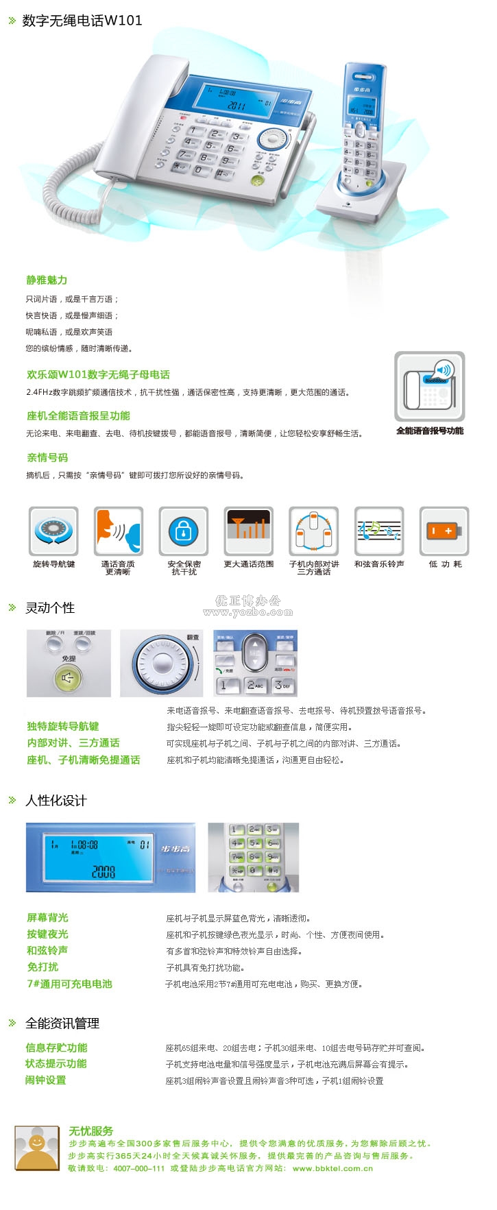 > 办公设备 > 通讯设备 > 子母电话 > 步步高 W101数字无绳电话