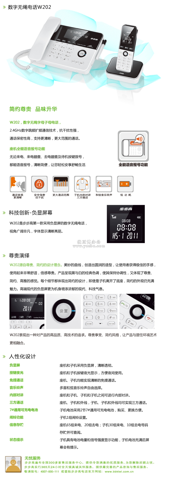 > 办公设备 > 通讯设备 > 子母电话 > 步步高(BBK)数字无绳电话W202 热销新品