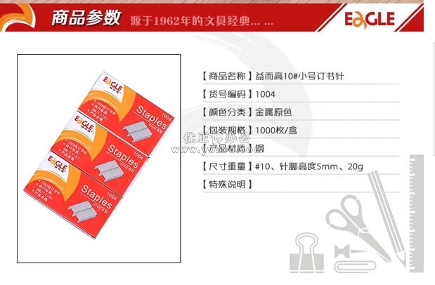 • 益而高 标准订书针 1004 10#一盒1000钉