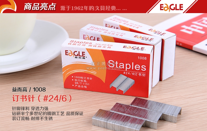 > 办公用品 > 桌面用品 > 订书针 > 益而高 档案专用不锈钢书针1008s 24/6