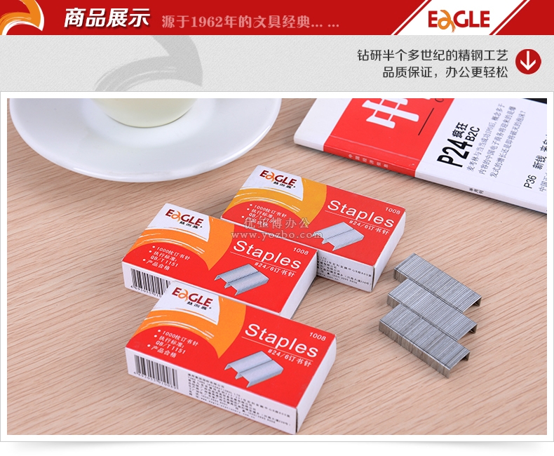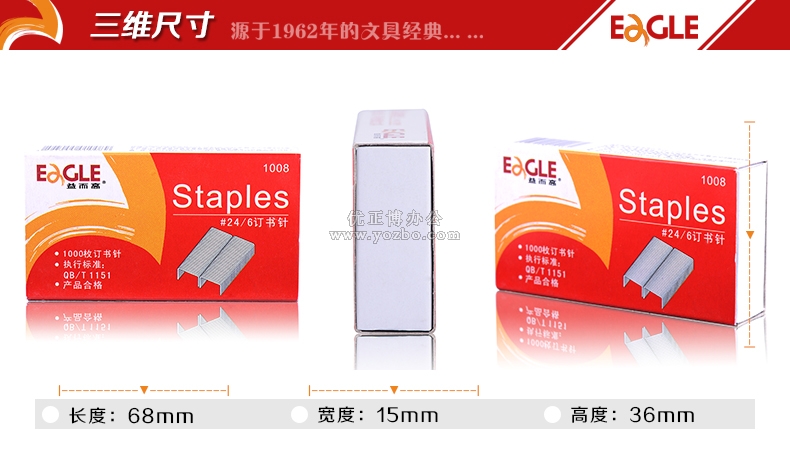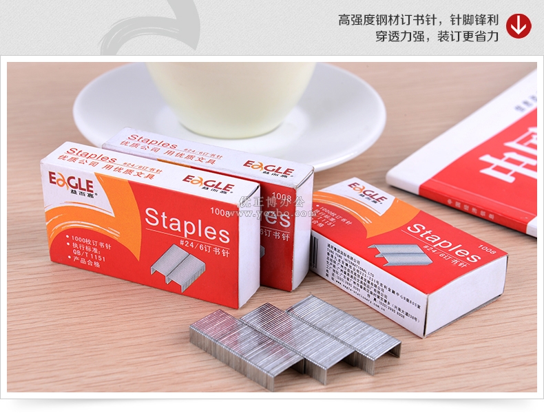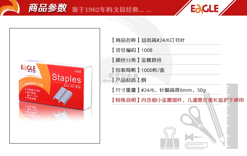 > 办公用品 > 桌面用品 > 订书针 > 益而高 标准订书针1008 #24/6一盒1000钉