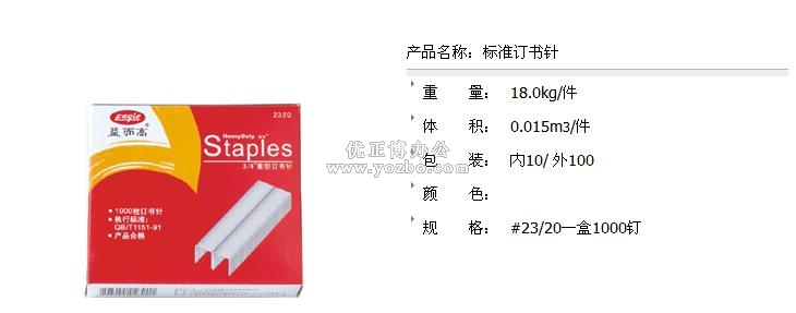 > 办公用品 > 桌面用品 > 订书针 > 益而高 标准订书针2320 #23/20一盒1000钉