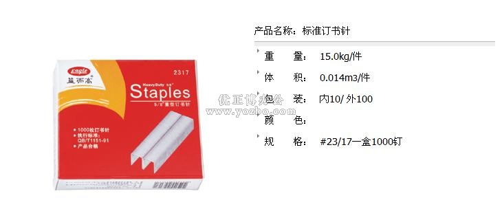 > 办公用品 > 桌面用品 > 订书针 > 益而高 标准订书针2317 #23/17一盒1000钉