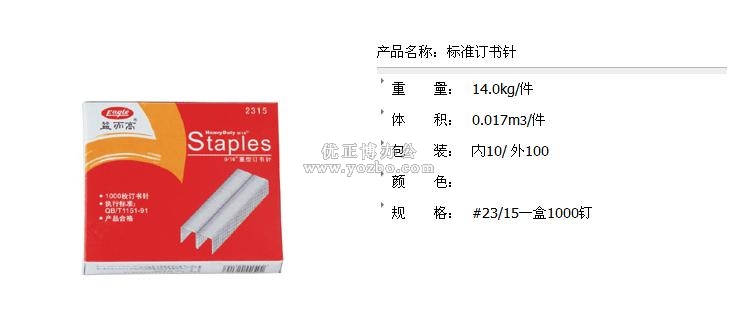> 办公用品 > 桌面用品 > 订书针 > 益而高 标准订书针2315 #23/15一盒1000钉