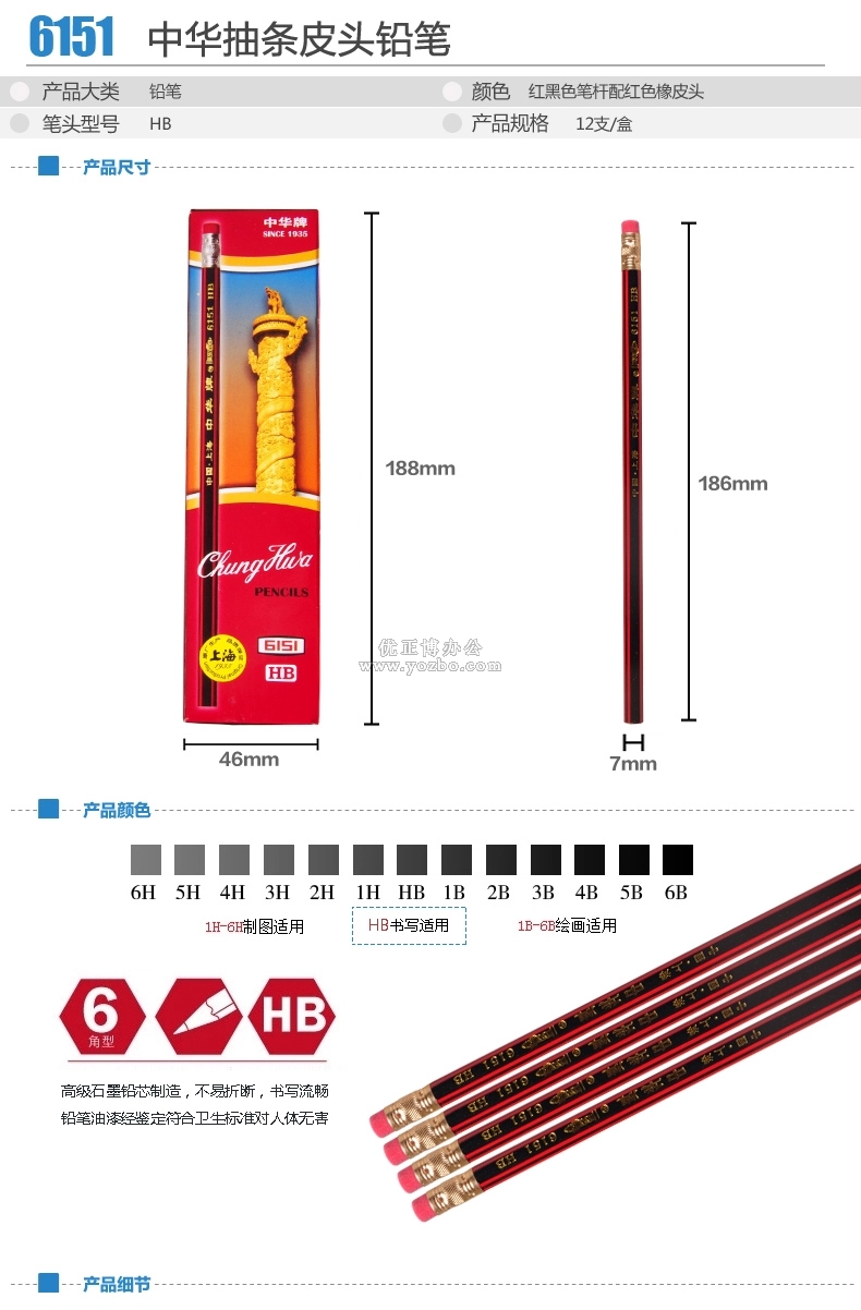 > 办公用品 > 书写工具 > 铅笔 > 中华铅笔 精装铅笔6151