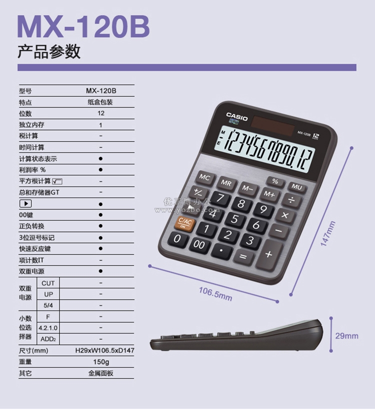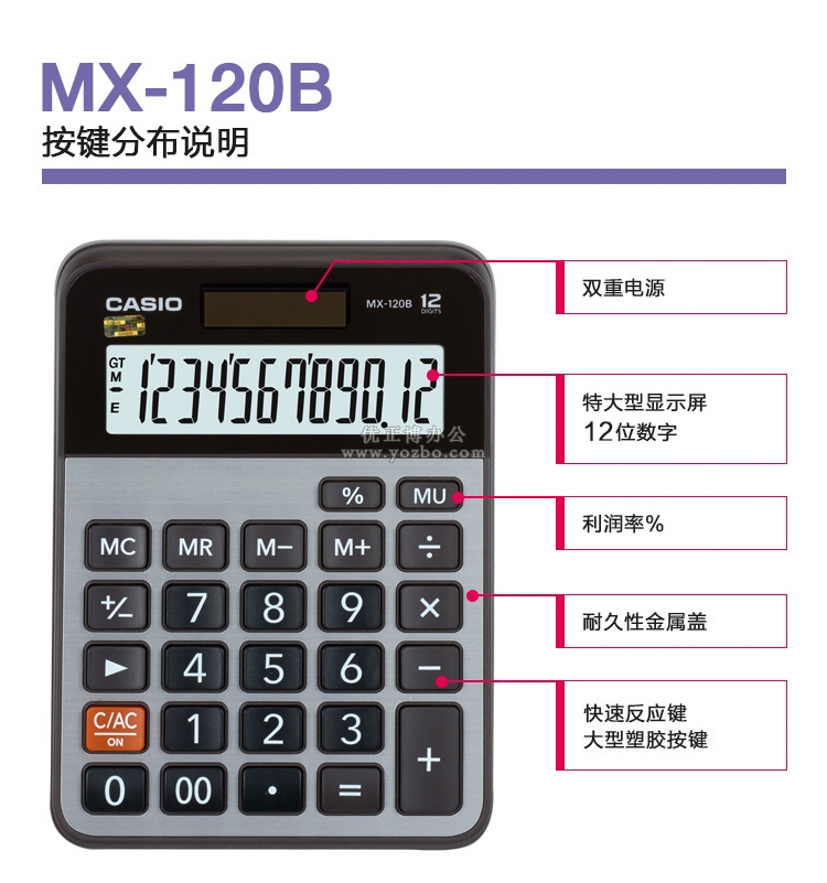 > 办公用品 > 桌面用品 > 计算器 > 卡西欧(CASIO)12位数桌面型计算器 MX-120B