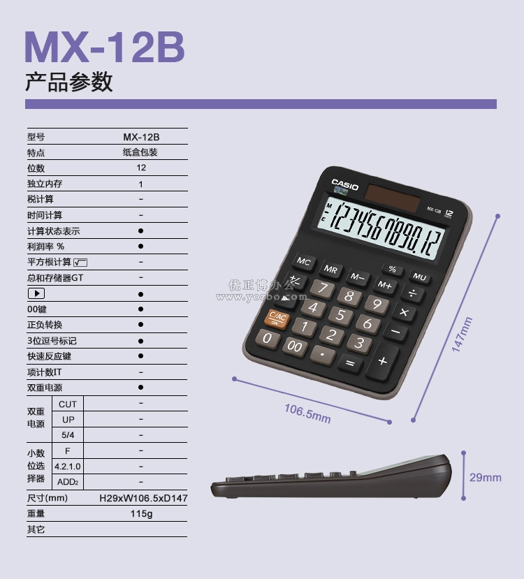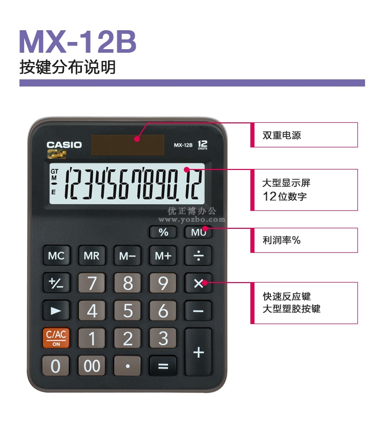 > 办公用品 > 桌面用品 > 计算器 > 卡西欧(CASIO)12位数桌面型计算器 MX-12B