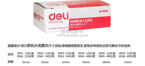 得力黑色长尾票夹15/19/25/32/41/51mm(纸盒)分享 暂存