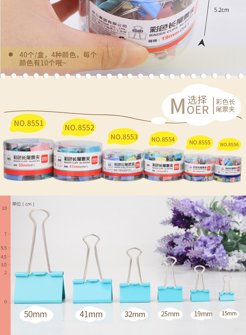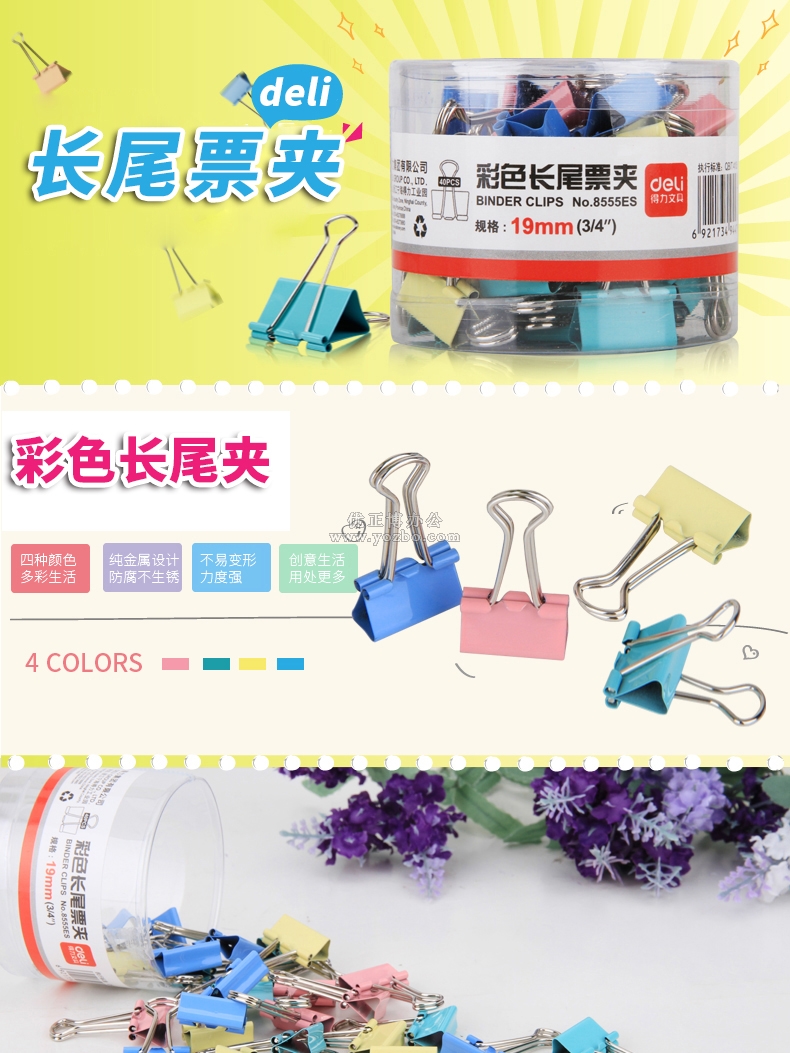 得力文具 筒装彩色长尾票夹 规格15~51mm分享 暂存