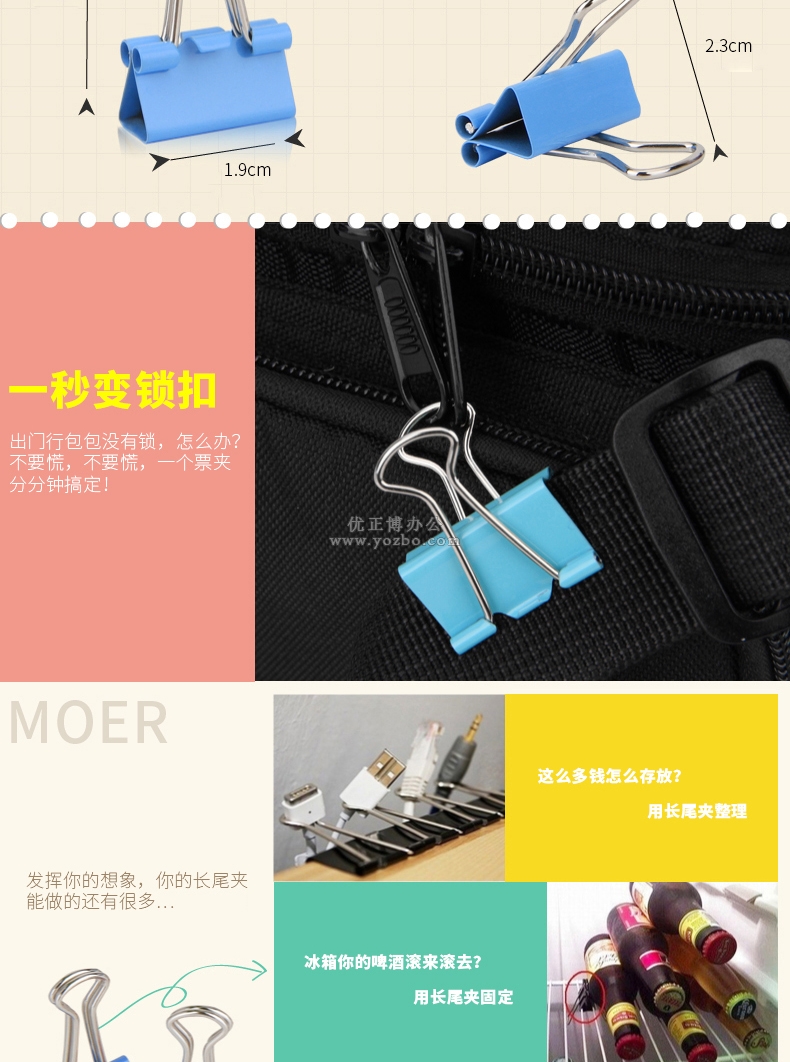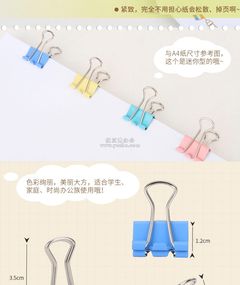 颜色:蓝/绿/红/黄 8551 规格51mm 12只/盒 ¥12.00 8552 规格41mm 24只/盒 ¥18.00 8553 规格32mm 24只/盒 ¥10.00 8554 规格25mm 48只/盒 ¥13.00 8555 规格19mm 40只/盒 ¥7.00 8556 规格15mm 60只/盒 ¥10.00
