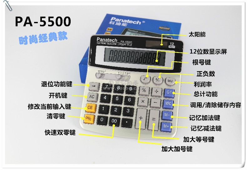 > 办公用品 > 桌面用品 > 计算器 > 科迪能PA-5500太阳能计算器 办公商务计算器
