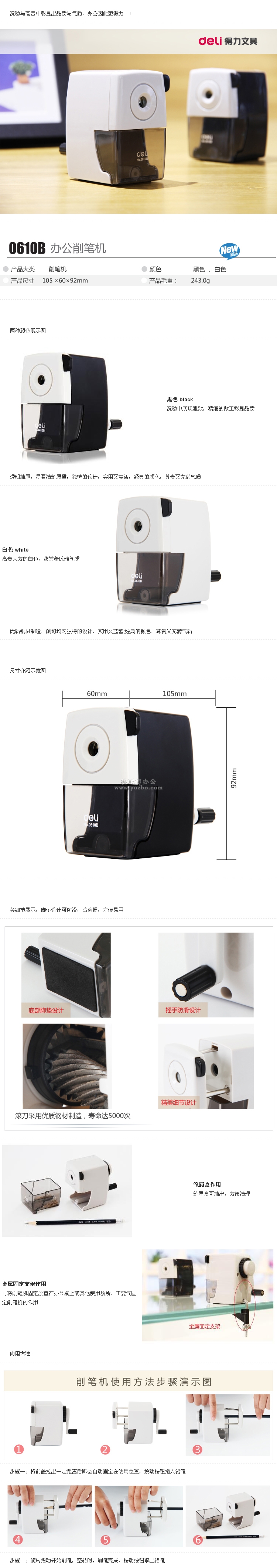 > 办公用品 > 桌面用品 > 卷笔刨/机 > 得力0610B 标准办公型削笔机 卷笔机