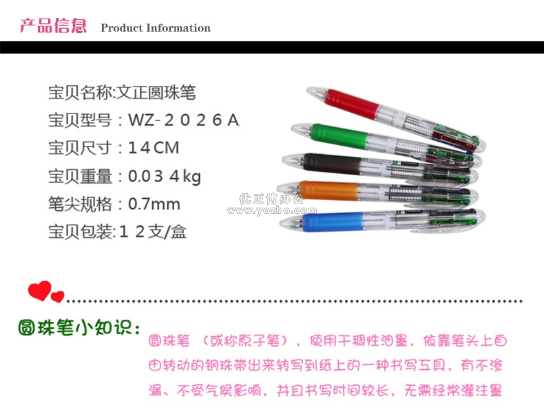 > 办公用品 > 书写工具 > 圆珠笔 > 文正四色按动圆珠笔2026A