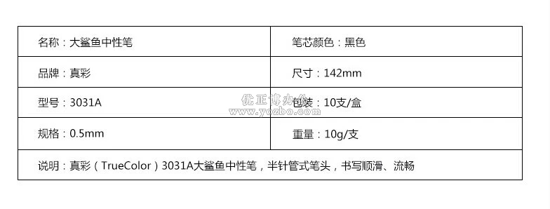 • 真彩3031A大鲨鱼中性笔 0.5mm 大容量