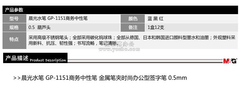 > 办公用品 > 书写工具 > 中性笔 > 晨光商务办公中性笔GP1151 0.5mm