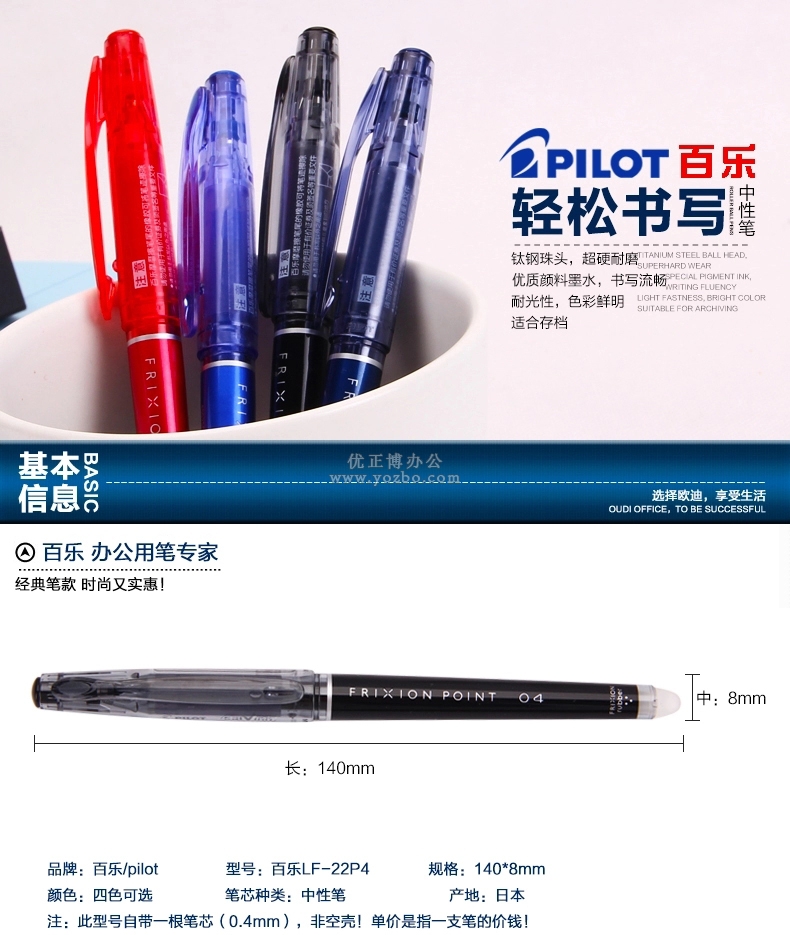 > 办公用品 > 书写工具 > 中性笔 > 百乐进口LF-22P4可擦笔摩磨擦中性笔 0.4mm