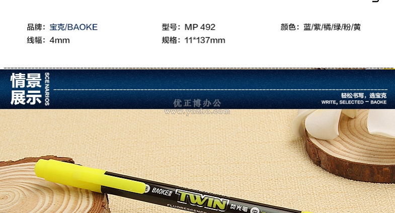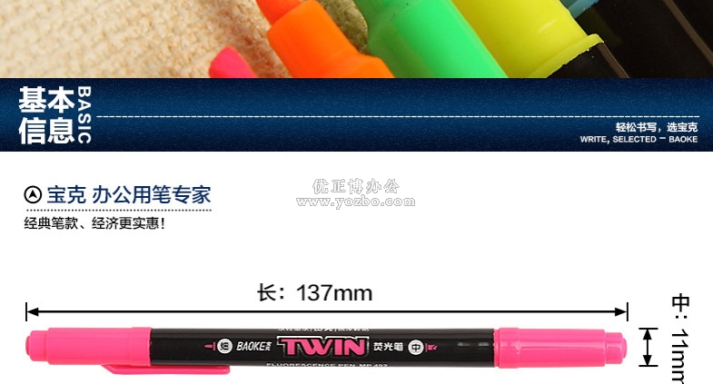 > 办公用品 > 书写工具 > 荧光笔 > 宝克荧光笔MP492 粗细双头荧光笔