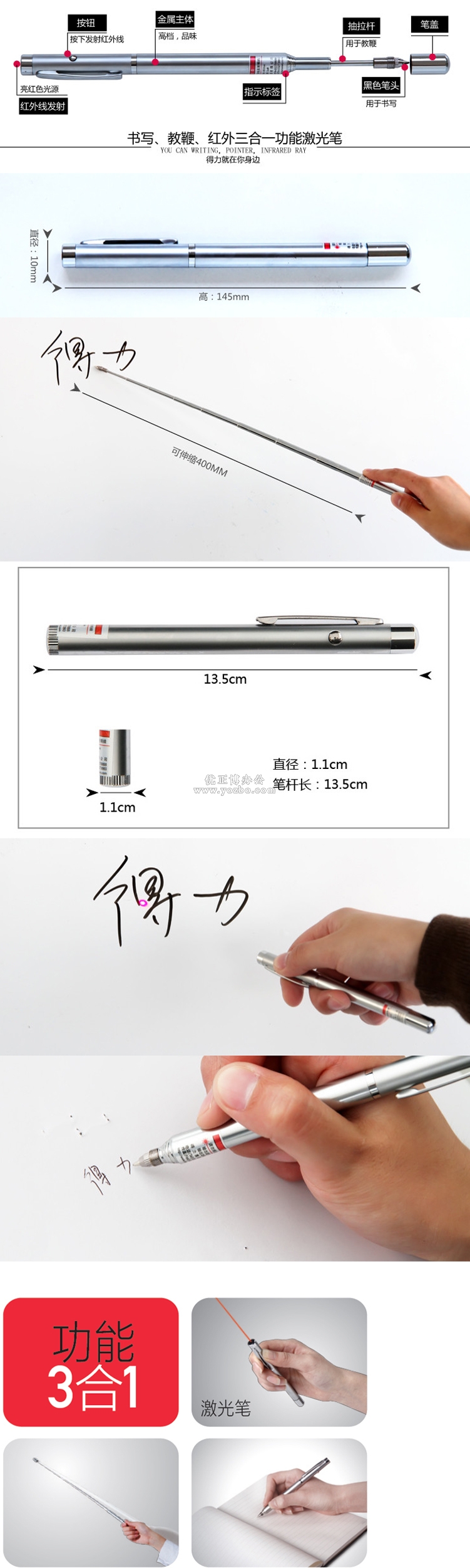 > 办公用品 > 书写工具 > 激光/教鞭笔 > 得力3934 电子教鞭笔 伸缩红光激光笔 镭射笔 演讲教学笔