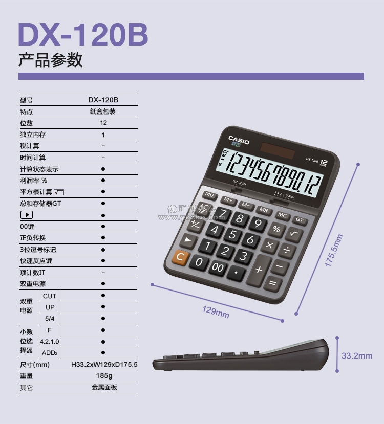 > 办公用品 > 桌面用品 > 计算器 > 卡西欧(CASIO)12位数桌面型计算器 DX-120B
