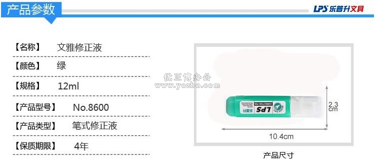 > 办公用品 > 书写工具 > 修正液 > 乐普升 文雅专业修正液8600 12ml