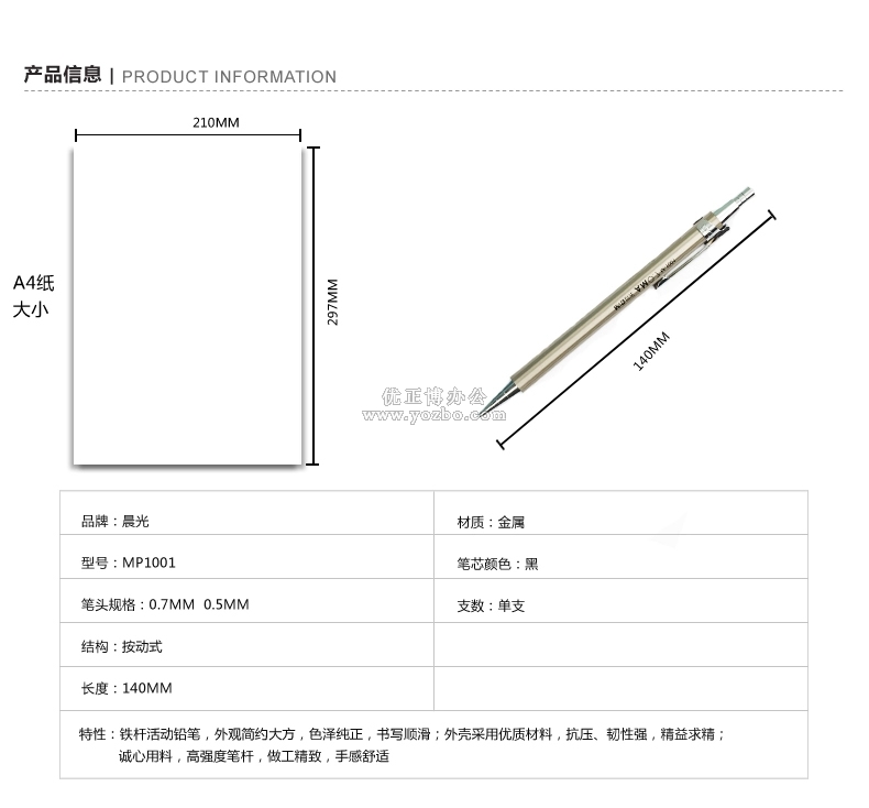> 办公用品 > 书写工具 > 铅笔 > 晨光M-1001 金属自动铅笔 活动铅笔 按制铅笔