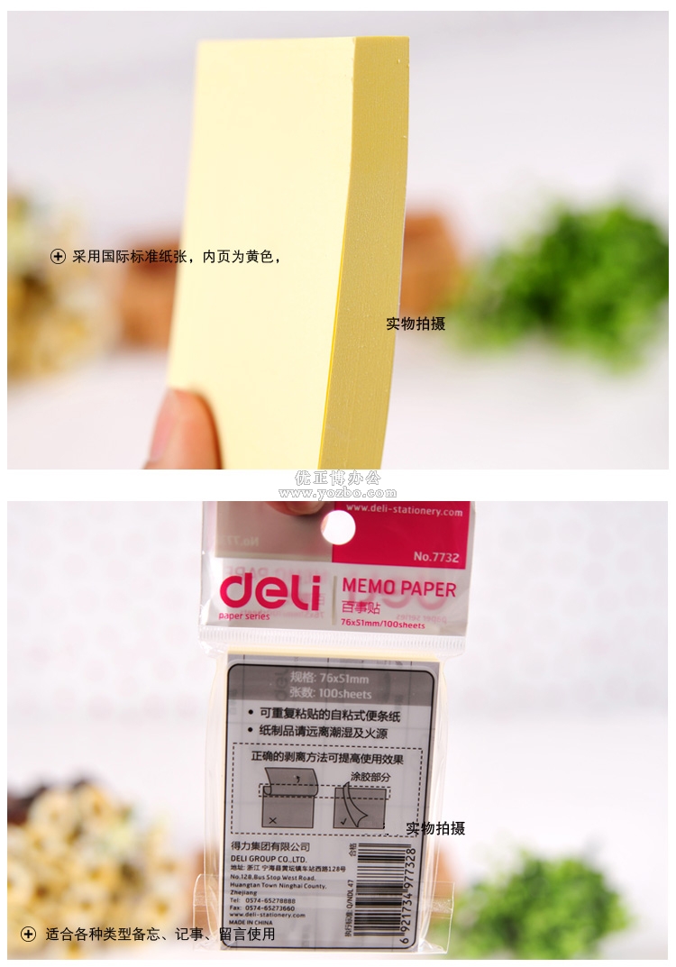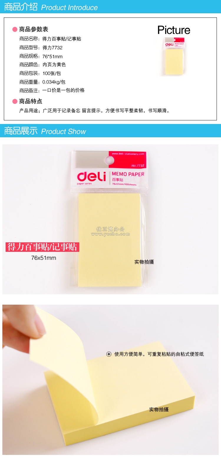 > 鍔炲叕鐢ㄥ搧 > 鍔炲叕鏈唽 > 鍛婄ず璐 > 寰楀姏 7732 鐧句簨璐 渚垮埄璐 76*51mm锛2*3锛