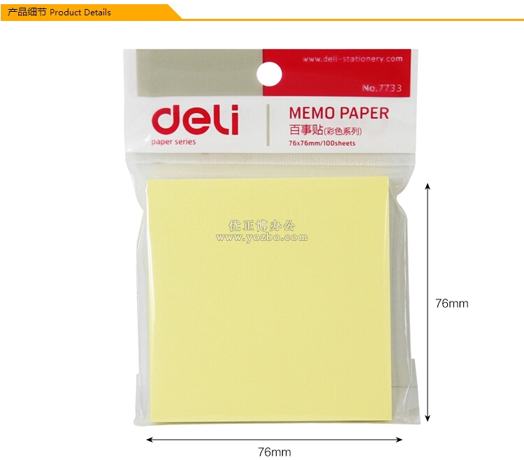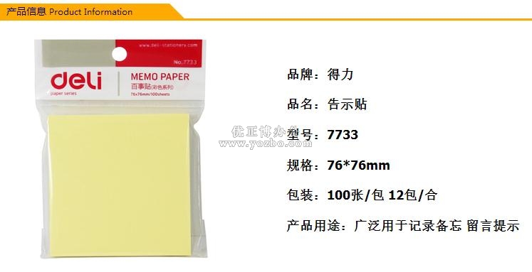 > 办公用品 > 办公本册 > 告示贴 > 得力 7733 百事贴 便利贴 76*76mm(3*3)