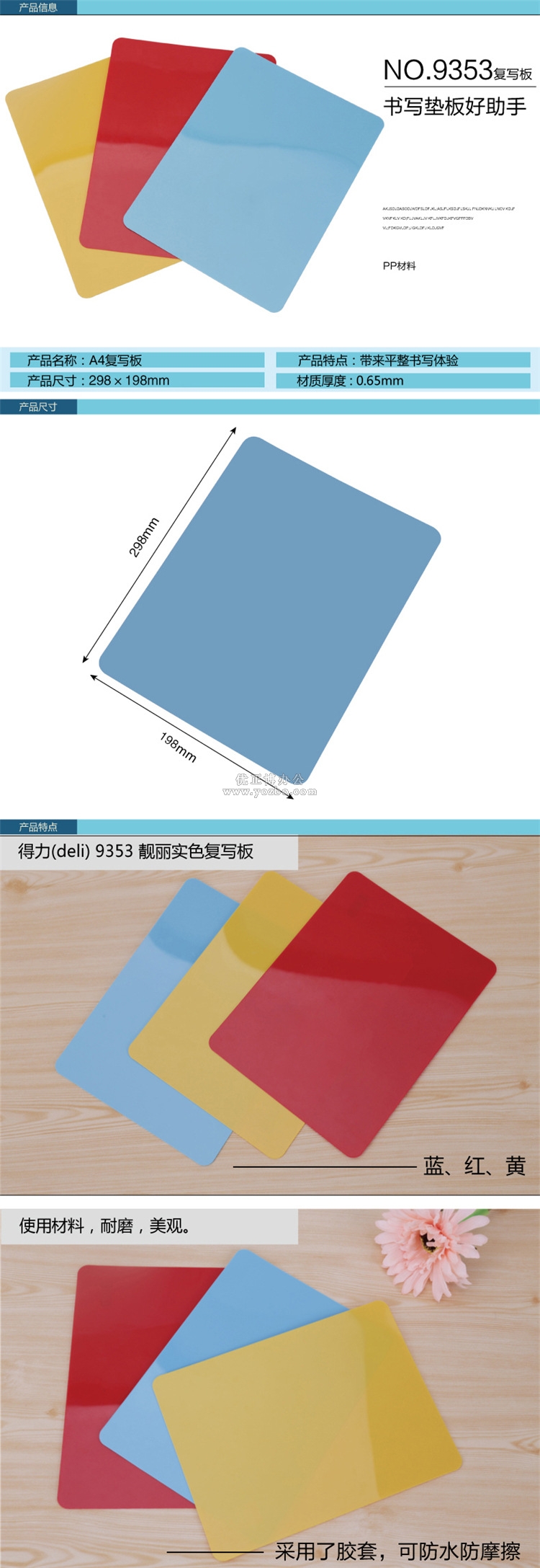 > 办公用品 > 桌面用品 > 复写垫板 > 得力复写板9353(298x 198mm)