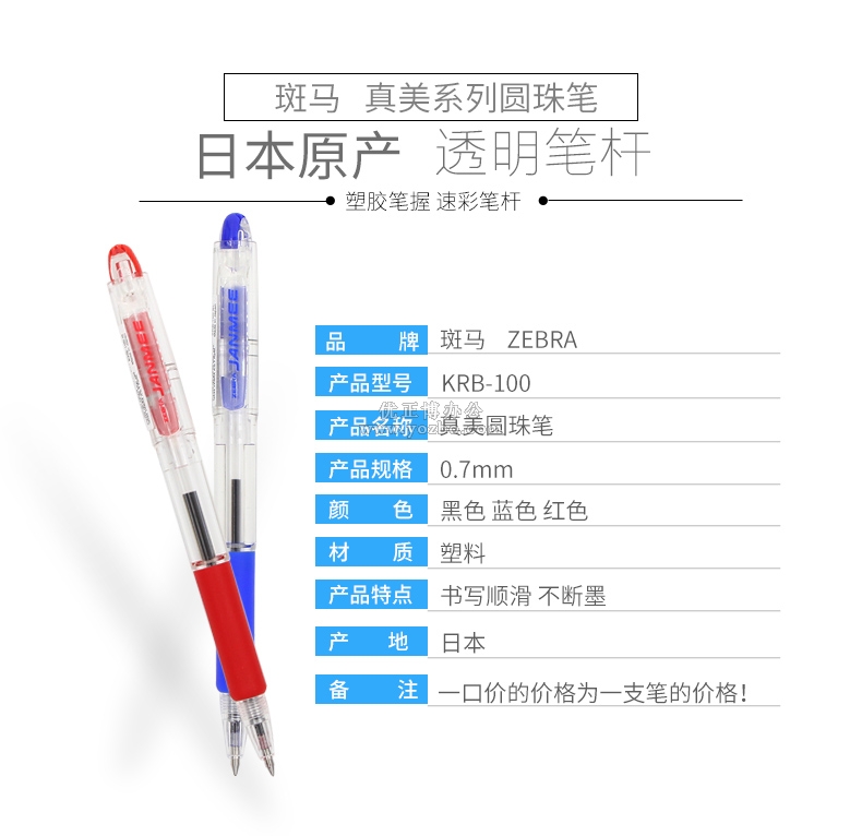 > 办公用品 > 书写工具 > 圆珠笔 > 斑马真美KRB-100圆珠笔 0.7mm